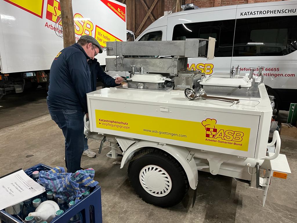 in der mobilen Küche werden am Einsatztag Gerichte für 170 Personen gekocht